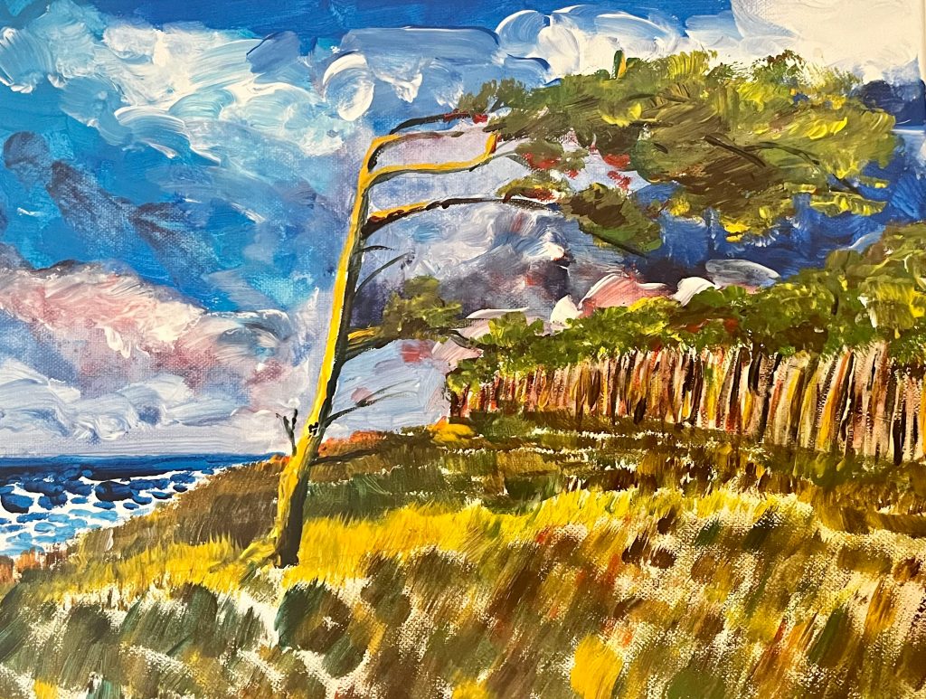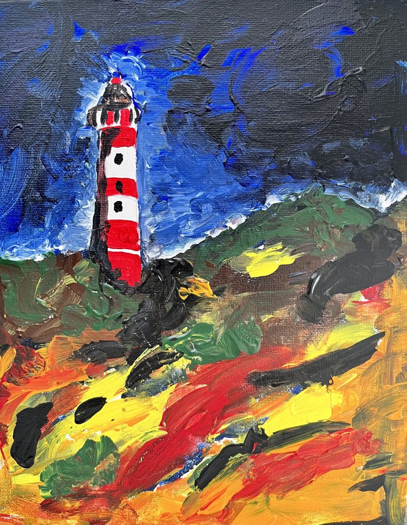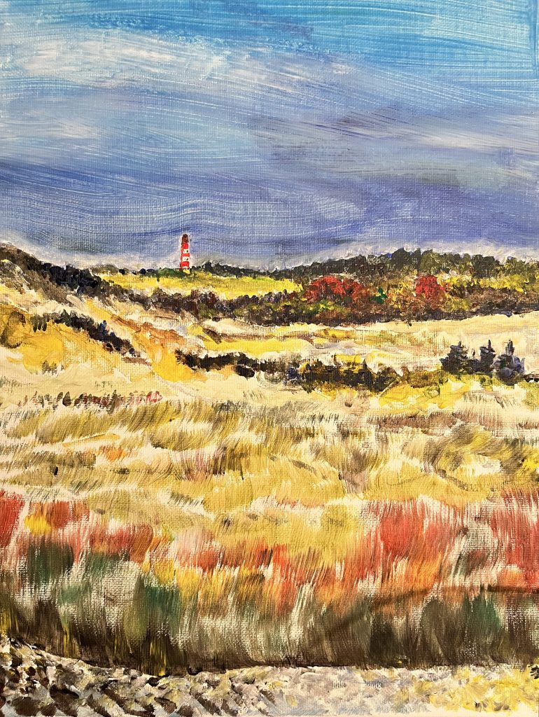 Amrumer Leuchtturm Acryl, 30 x 40 cm, 2021 Acryl Nacht am Leuchtturm, Acryl, 30 x 40 cm, 2023 Windige Zeiten, Acryl 60 x 40, 2022 Kalt, Acryl 50 x 40, 2022 Früher sahen die Wolken anders aus, Acryl 30x 40, 2023 Sonne pur, Acryl 30 x 40, 2023 Karibik auf den Lofoten, Acryl 40 x 60, 2023